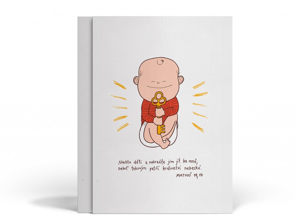 Blahopřání ke křtu (bez obálky), vhodné pro holčičku. Motiv - Takovým patří království nebeské. Přání je inspirované textem Matoušova evangelia.