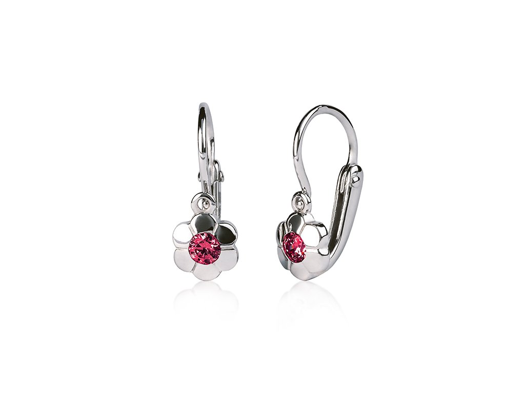Dětské náušnice - kytičky z bílého zlata s červeným zirkonem