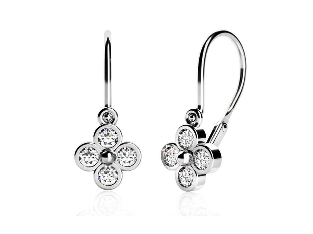 Dětské náušnice - kytičky z bílého zlata se čtyřmi čirými zirkony.