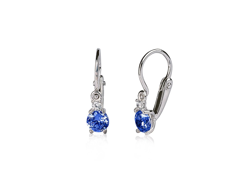 Dětské náušnice z bílého zlata s tmavě modrým a čirým zirkonem