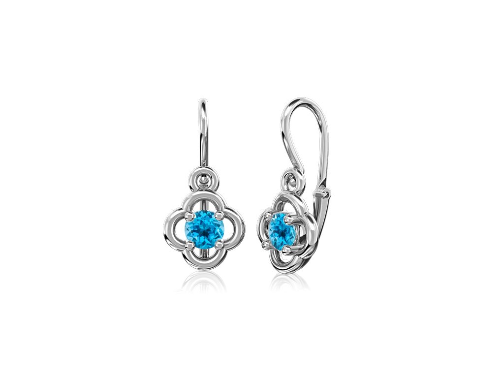 Dětské náušnice z bílého zlata se světle modrými zirkony