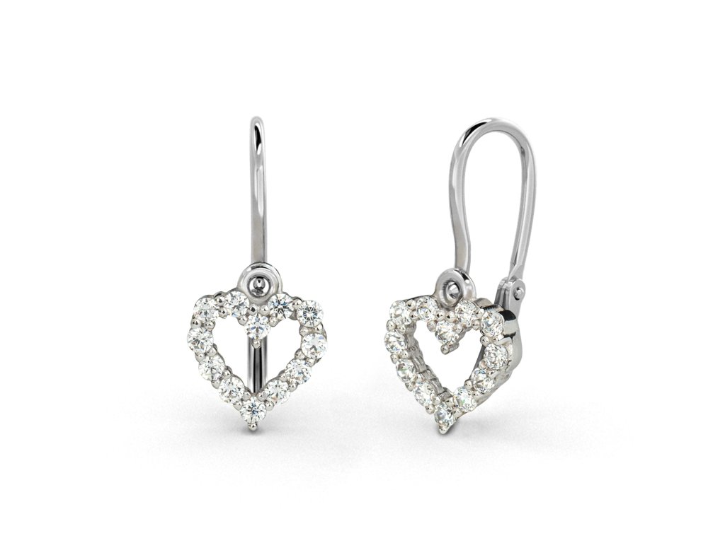 Dětské náušnice z bílého zlata - srdíčka po obvodu vykládaná drobnými čirými zirkony.