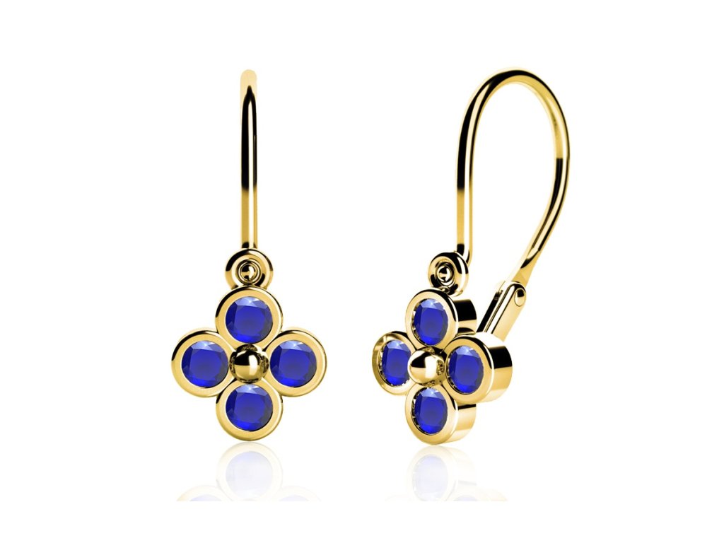 Dětské náušnice ze žlutého zlata s tmavě modrými zirkony