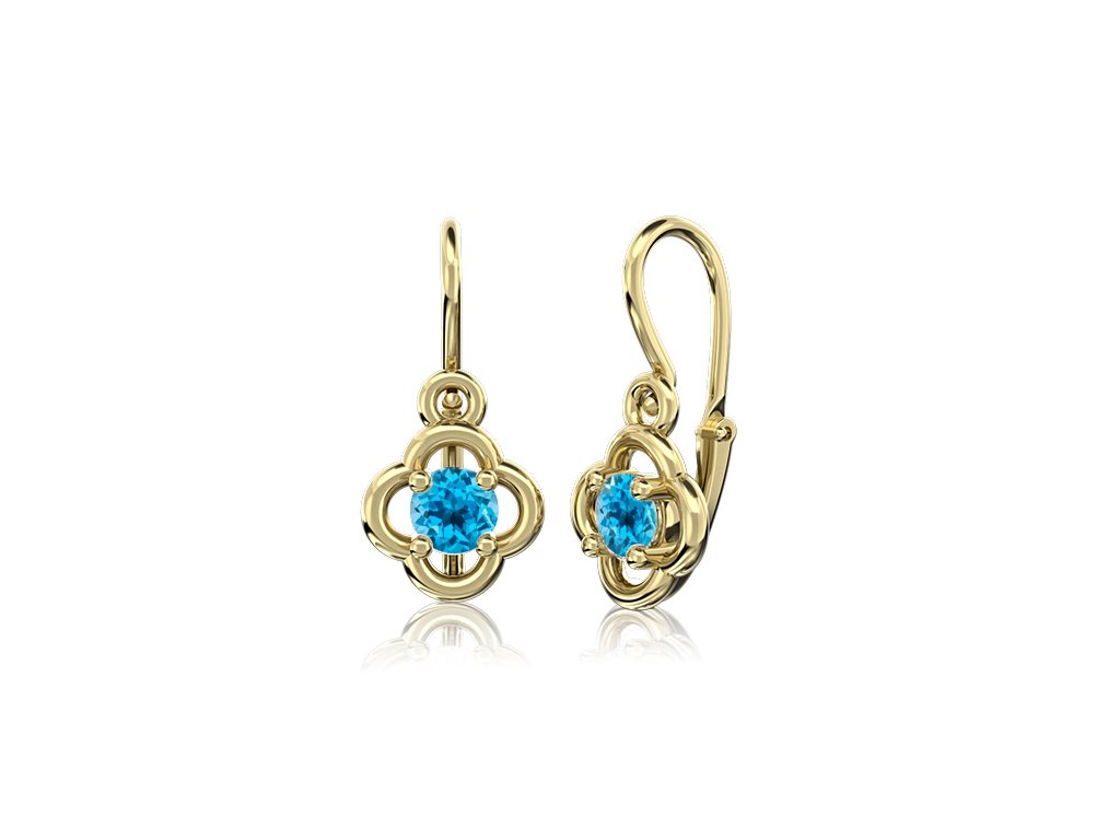 Dětské náušnice ze žlutého zlata se světle modrými zirkony