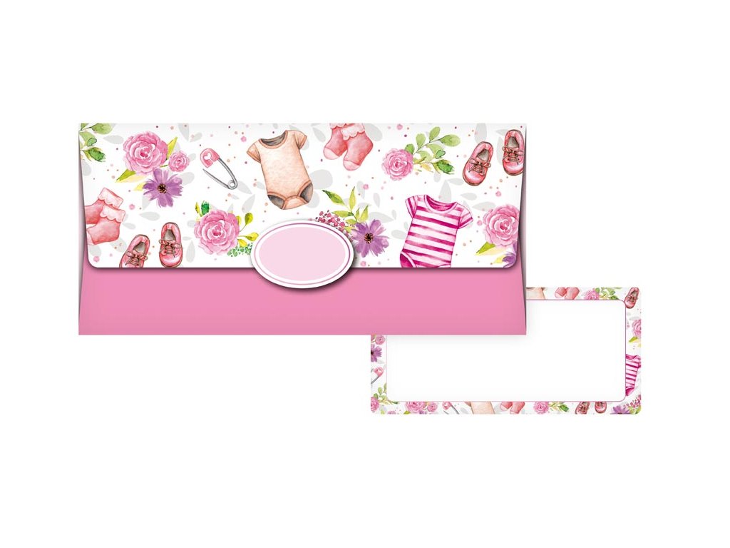 Růžová dárková obálka s dětským motivem (18X8,5 CM)