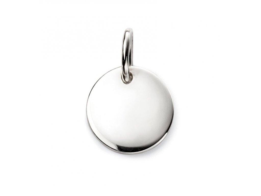 Stříbrný přívěsek - kulatá destička, na kterou je možné zhotovit rytinu. Vzhledem k malým rozměrům přívěsku doporučujeme jen 1-2 znaky, např. monogram.