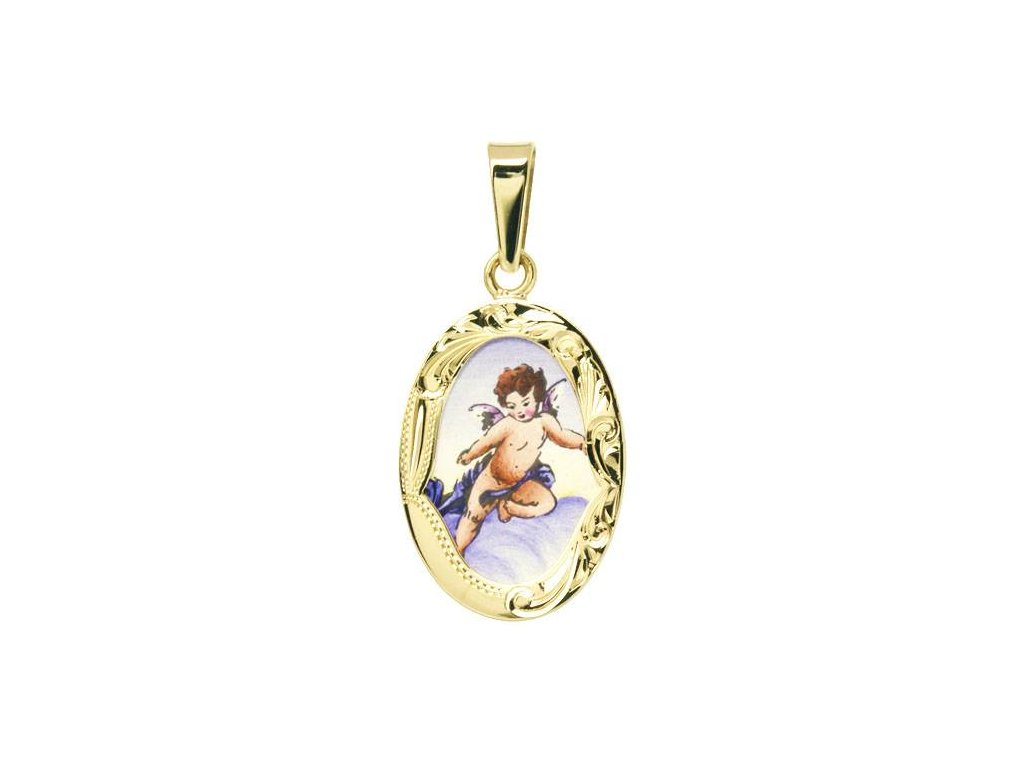 Dětský přívěsek - ochranný andílek větší v rytém rámečku žluté nebo bílé zlato